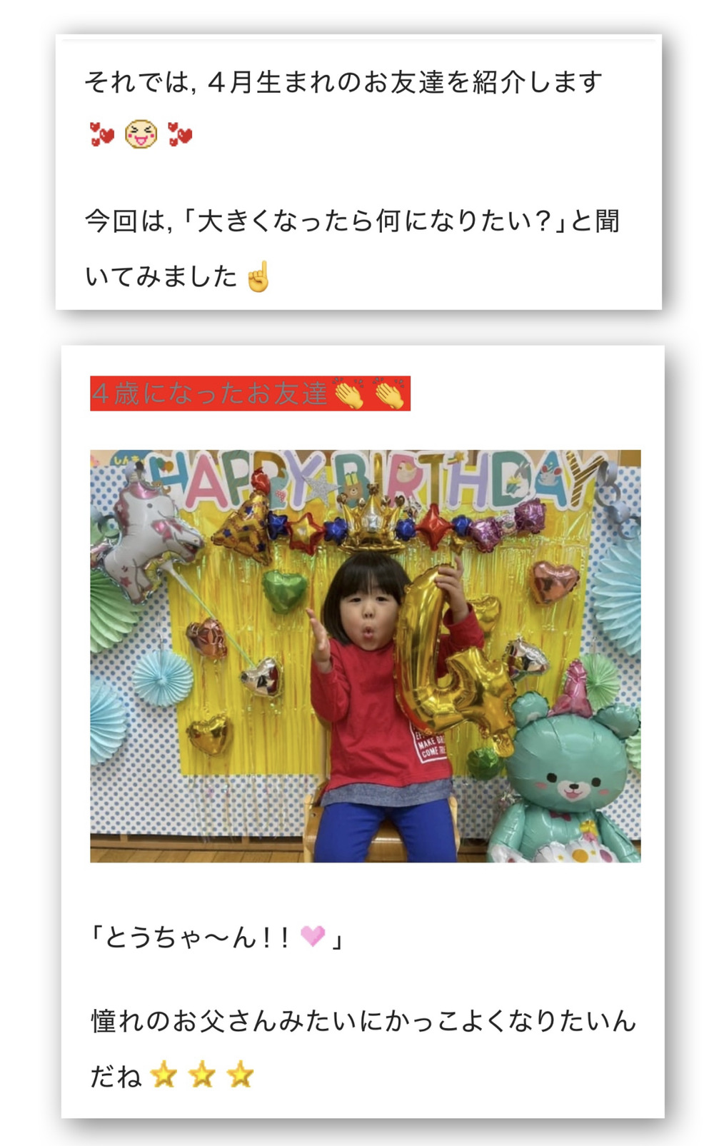父ちゃん(圭太)は、幼稚園のブログ見てにんまりしておりました☺️