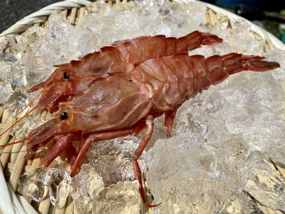 このエビは羅臼沖の深海に生息。高級魚のキンキを獲る深海刺し網漁で混獲された場合、地元鮮魚店などで販売されます。このエビをメインに獲る漁はないので水揚げ量は少なく、市場に出回らず地元で消費されることがほとんどです。
