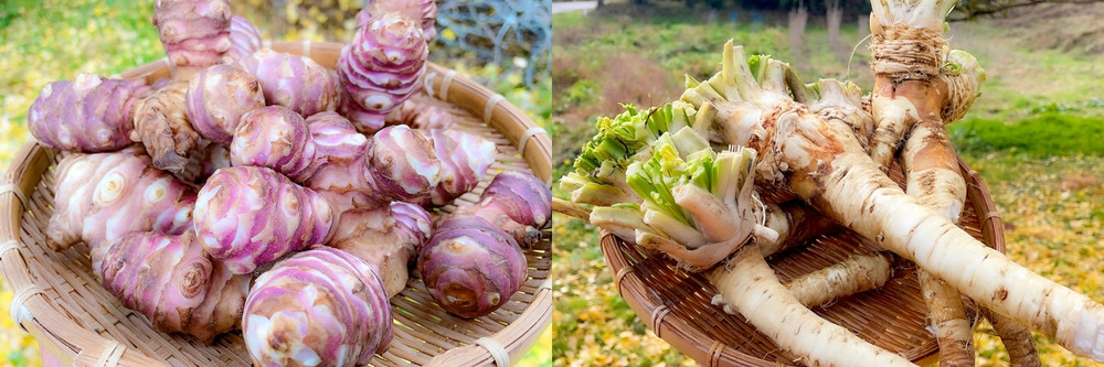 ・紅菊芋は加熱するとホクホク&しっとりした食感になりやすいのが特徴です。特に加熱したときの甘みが引き立つため、素揚げ、ローストなどでも相性が良いです。