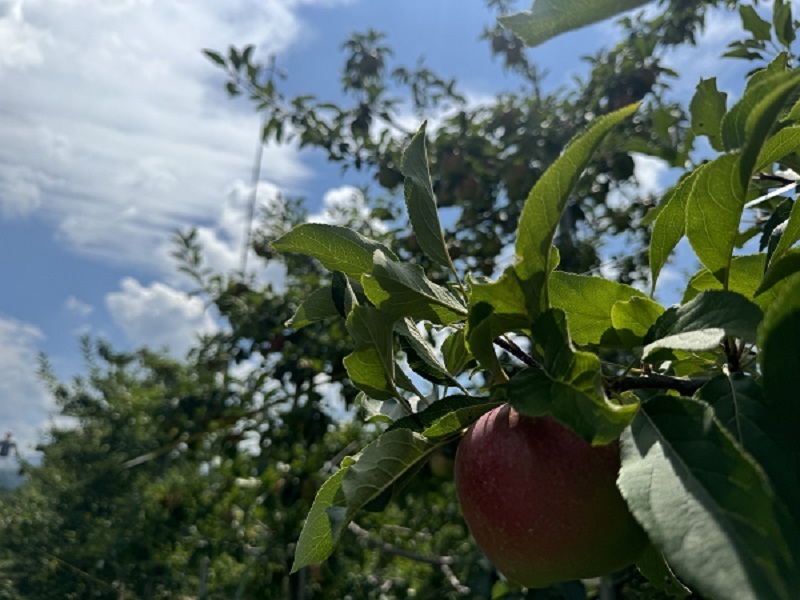 青森県津軽地方は、雨が降らず干ばつで、りんごの若木もバテ気味です。