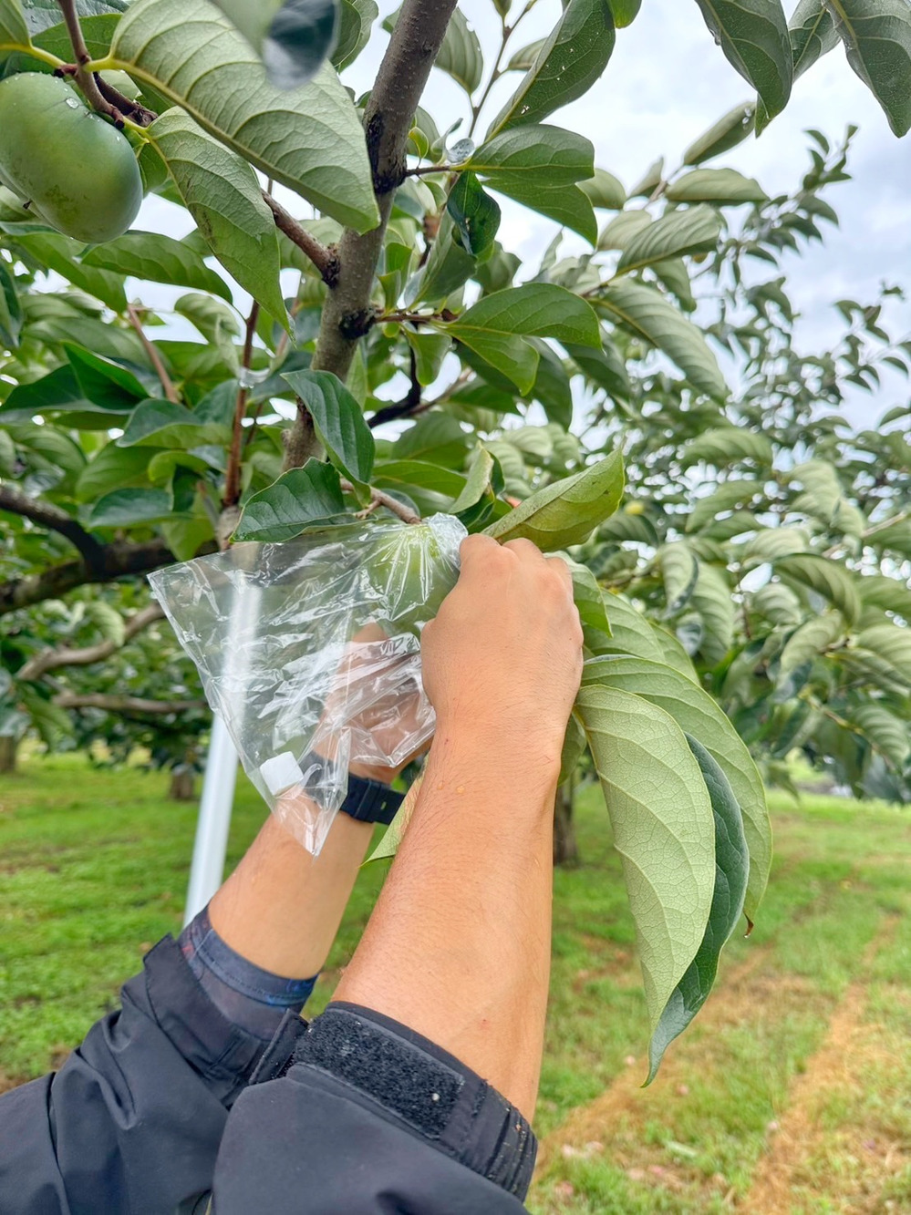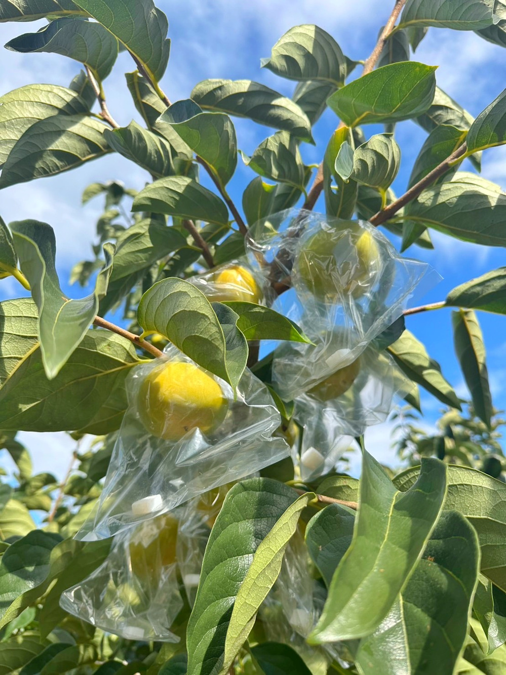 今年は 5,000個 の柿を、ひとつひとつ手作業で袋かけしました。