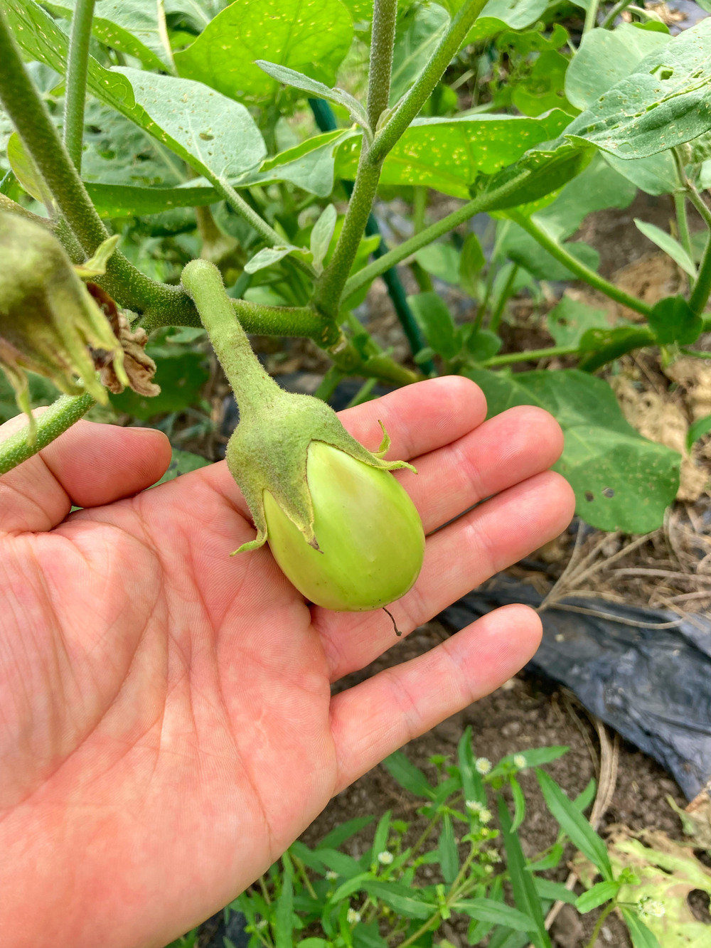 近江夢楽ファームでは、普通のナス、ゼブラナス、緑ナス、白ナスなど様々な種類のナスを、無農薬で栽培しています😊