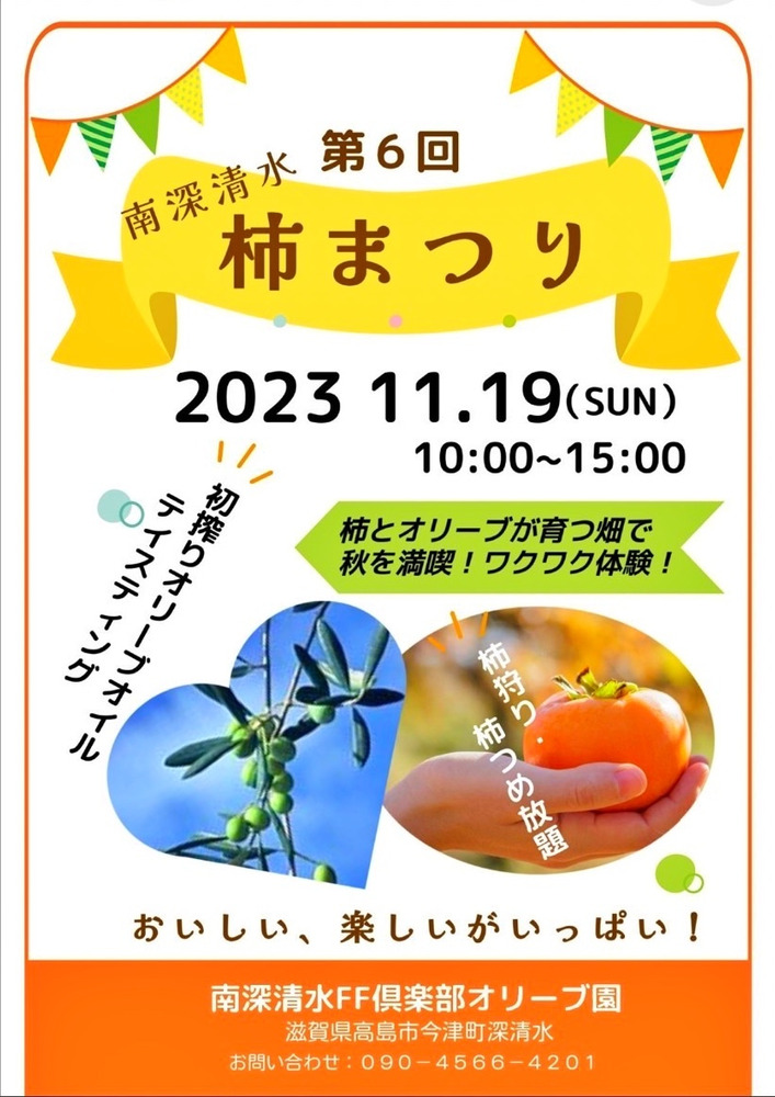 11/19(日)、滋賀県高島市で行われる『柿まつり』に近江夢楽ファームも出店いたします😊