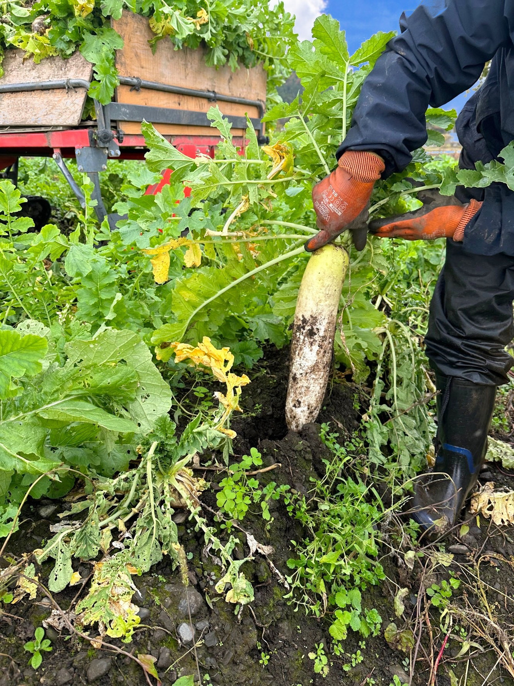 この大根を使って、当農園の人気商品『割り干し大根』を作っていきます✨