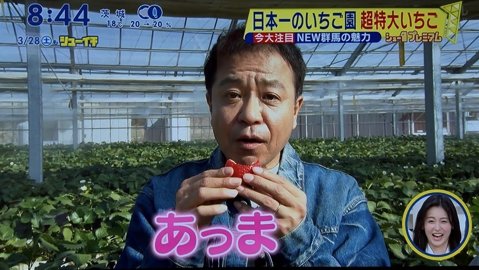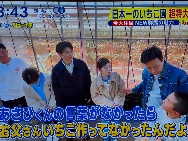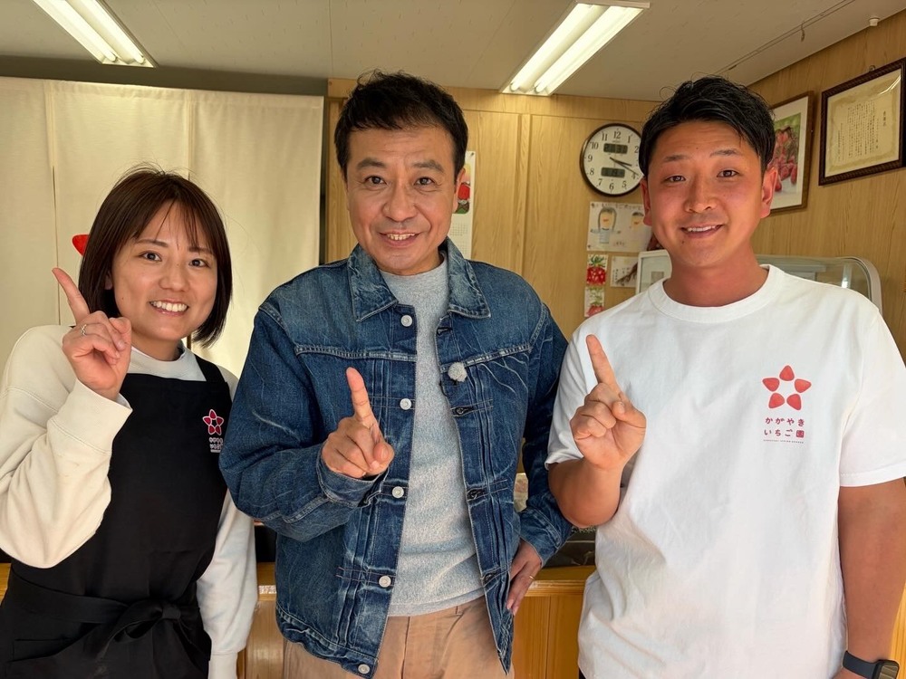 中山秀征さん&アナウンサーの方々にご来園いただき、当園のやよいひめを試食!