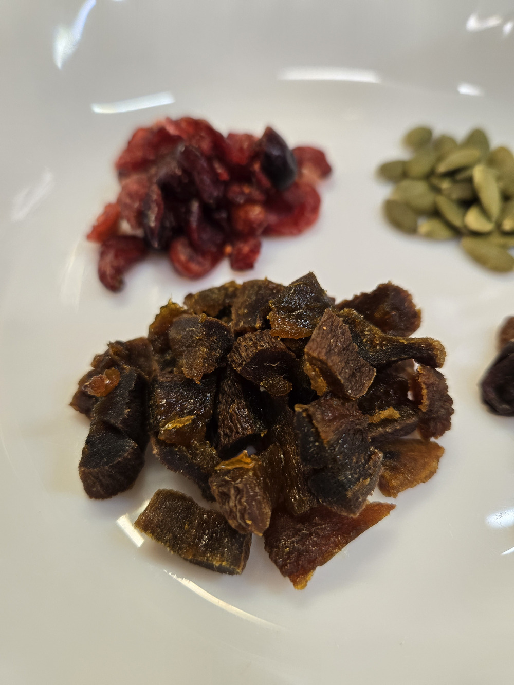 グラノーラ、干し柿が入っている製品って見かけたことがないです。なぜ?と言うことで入れてみましたがめちゃくちゃ相性合ってると思います。