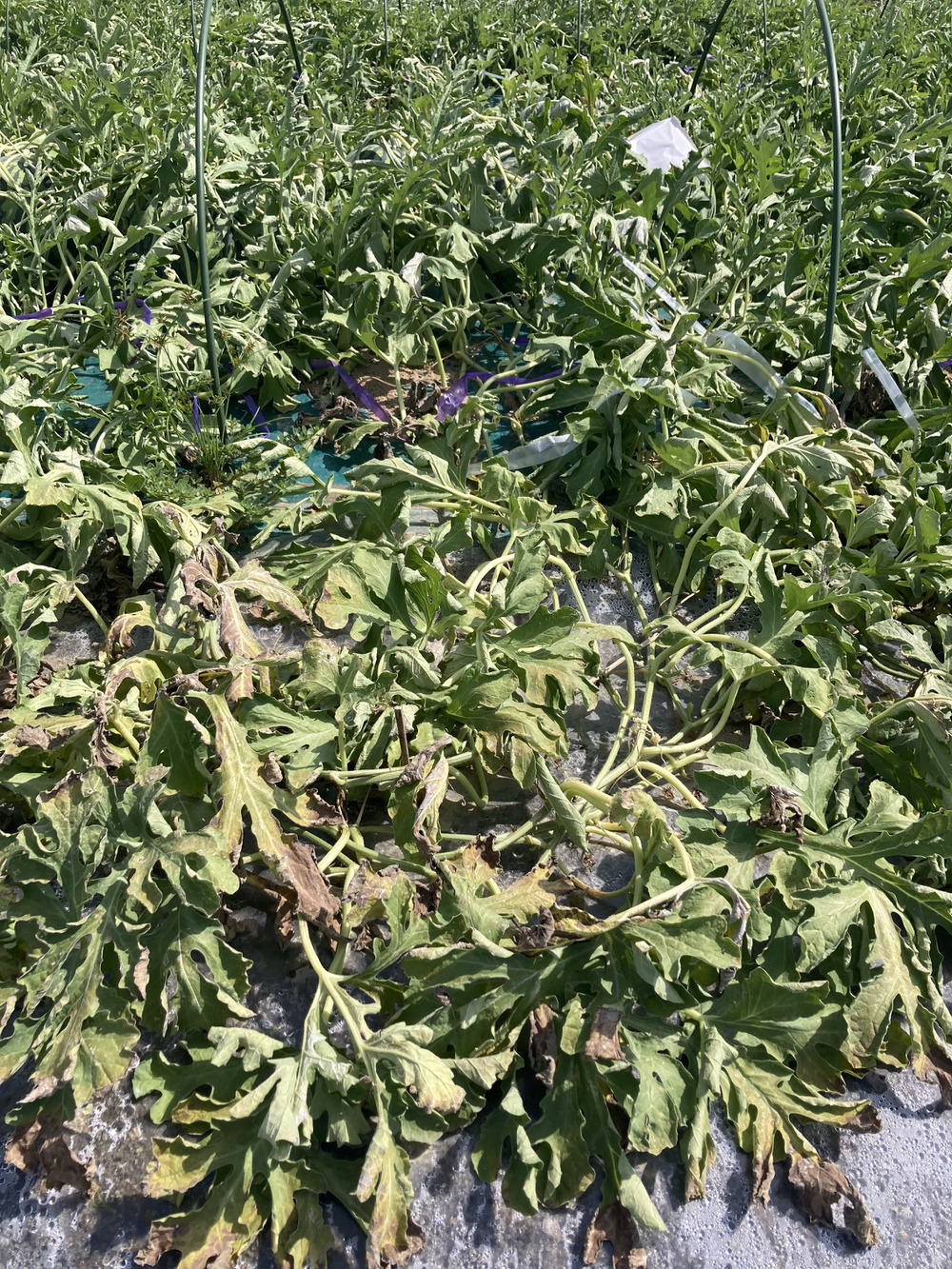 連日の猛暑の影響でスイカもバテている株がちらほら出始めました。