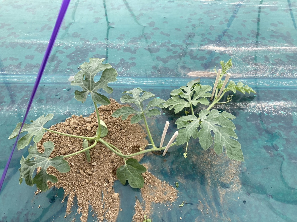 4月から5月前半は天候が不安定で生育が悪い株もありましたが、最近の暑さでスイカ達がどんどん元気になってきました。