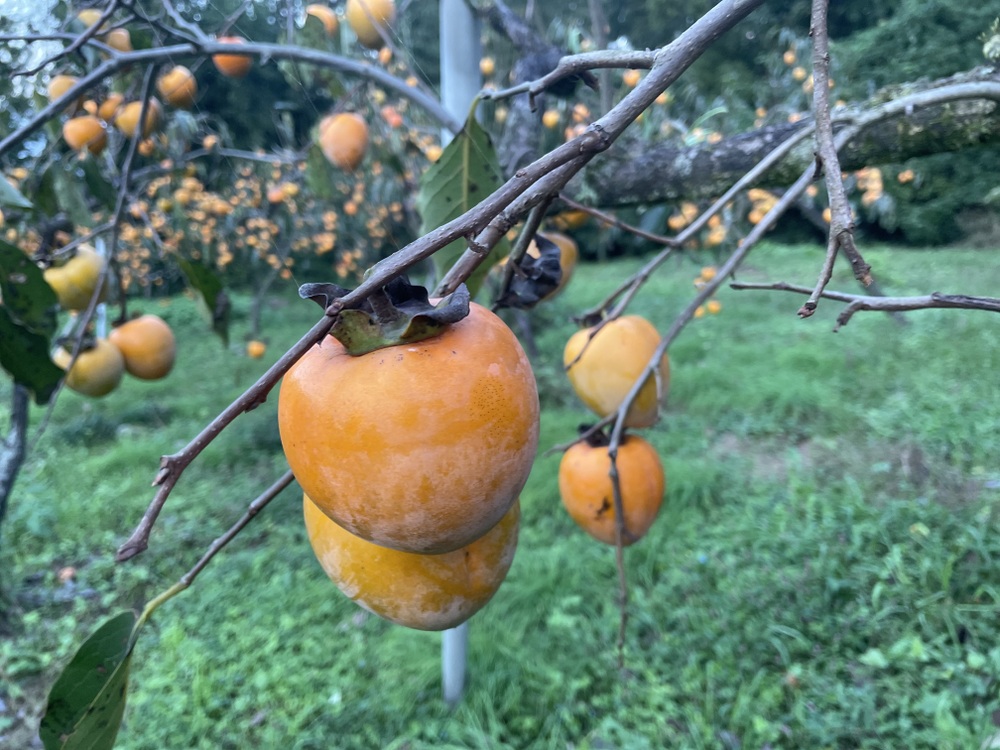 農薬・化学肥料を使わず、自然の力で育った新居田農林の柿。