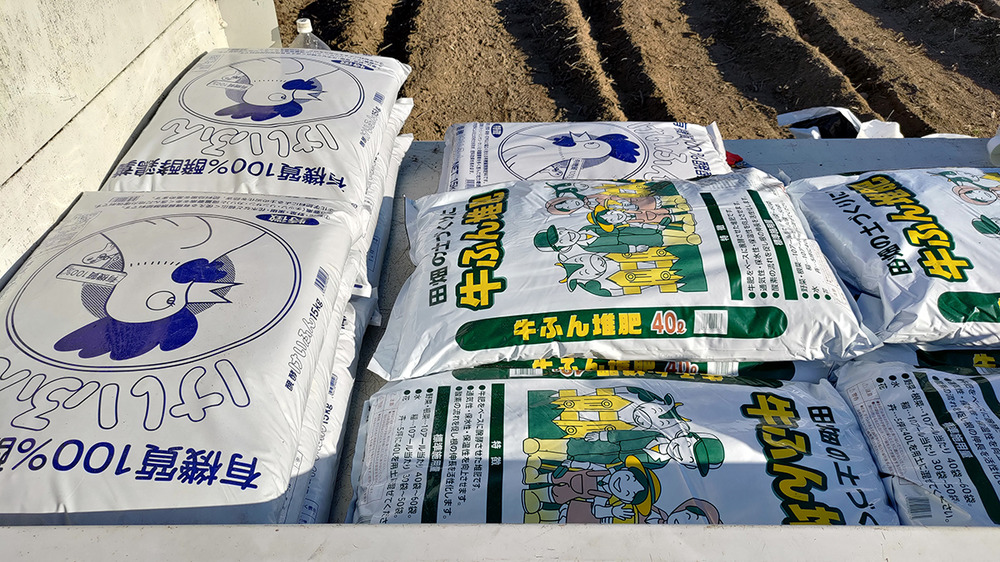 使用した肥料は鶏糞と牛糞、苦土石灰、有機石灰とクエン酸です。