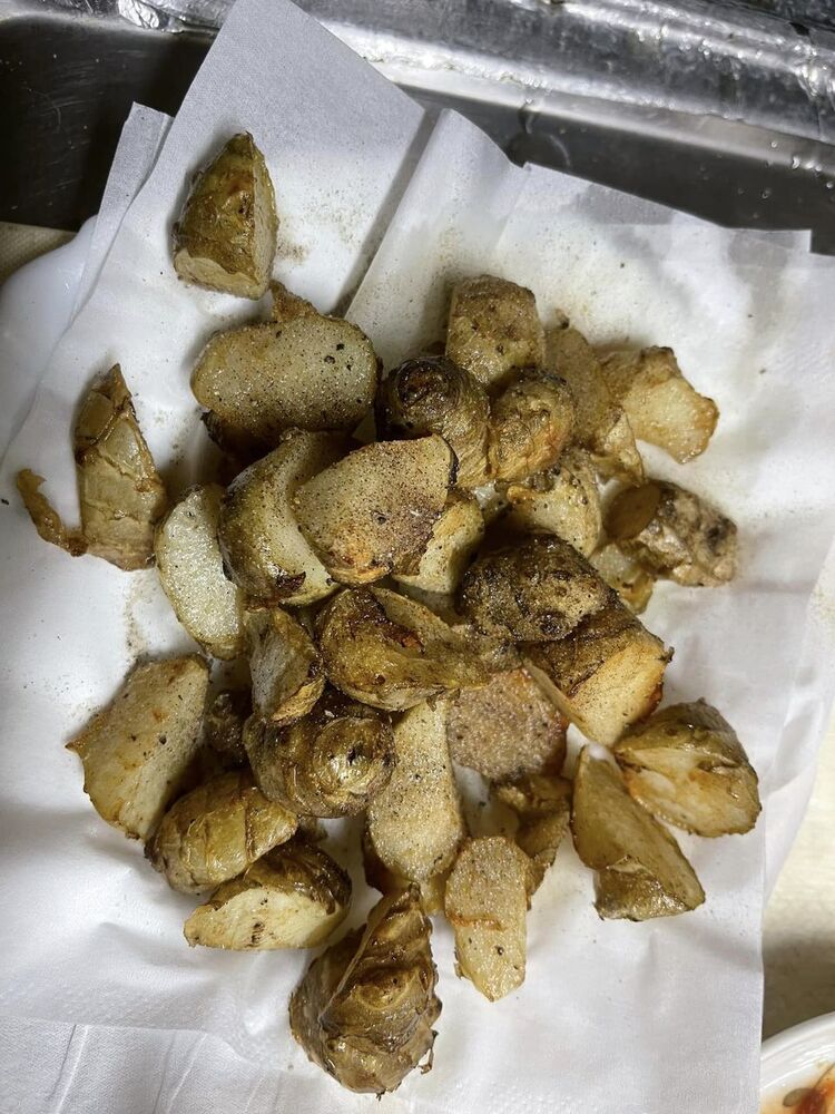 赤菊芋の食べ方は、色々有ると思いますが、一番簡単に頂くのならば素揚げして塩コショウでお召し上がりください。最初は、薄くスライスして、切りにくく成ったら、一口サイズにぶつ切りが良いですよ。どちらも美味しいです。ケチャップとマスタードが有れば一層に美味しいフライドポテトで完食しちゃいます。
