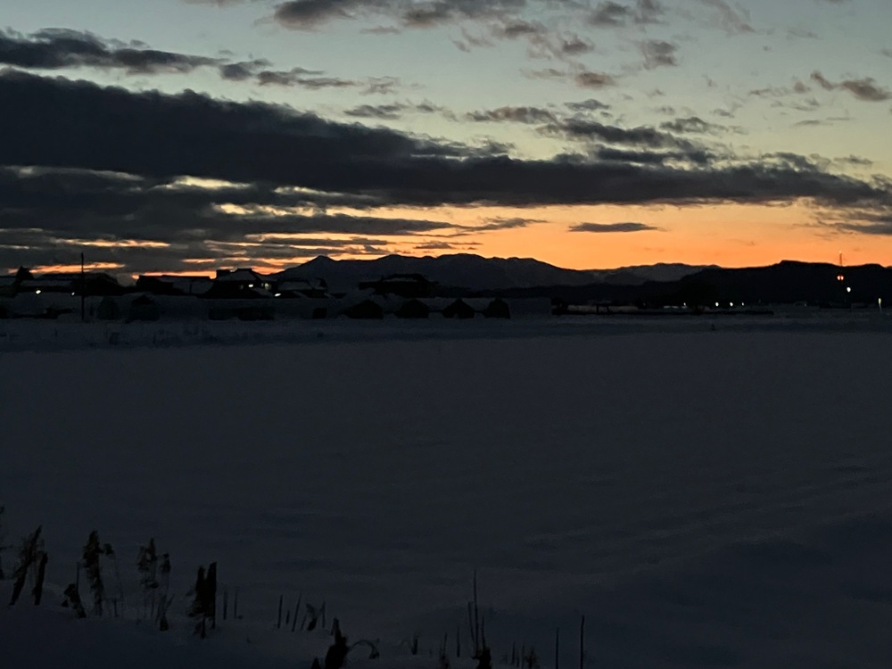 今朝は久しぶりに お月様も拝めて朝陽も美しく除雪作業のない朝になりました。