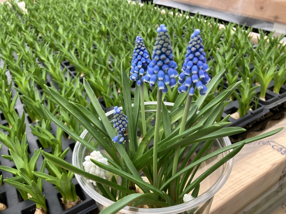 花芽付き球根たちも外の様子を横目にすくすくと皆様お届けできる日を楽しみにしています。