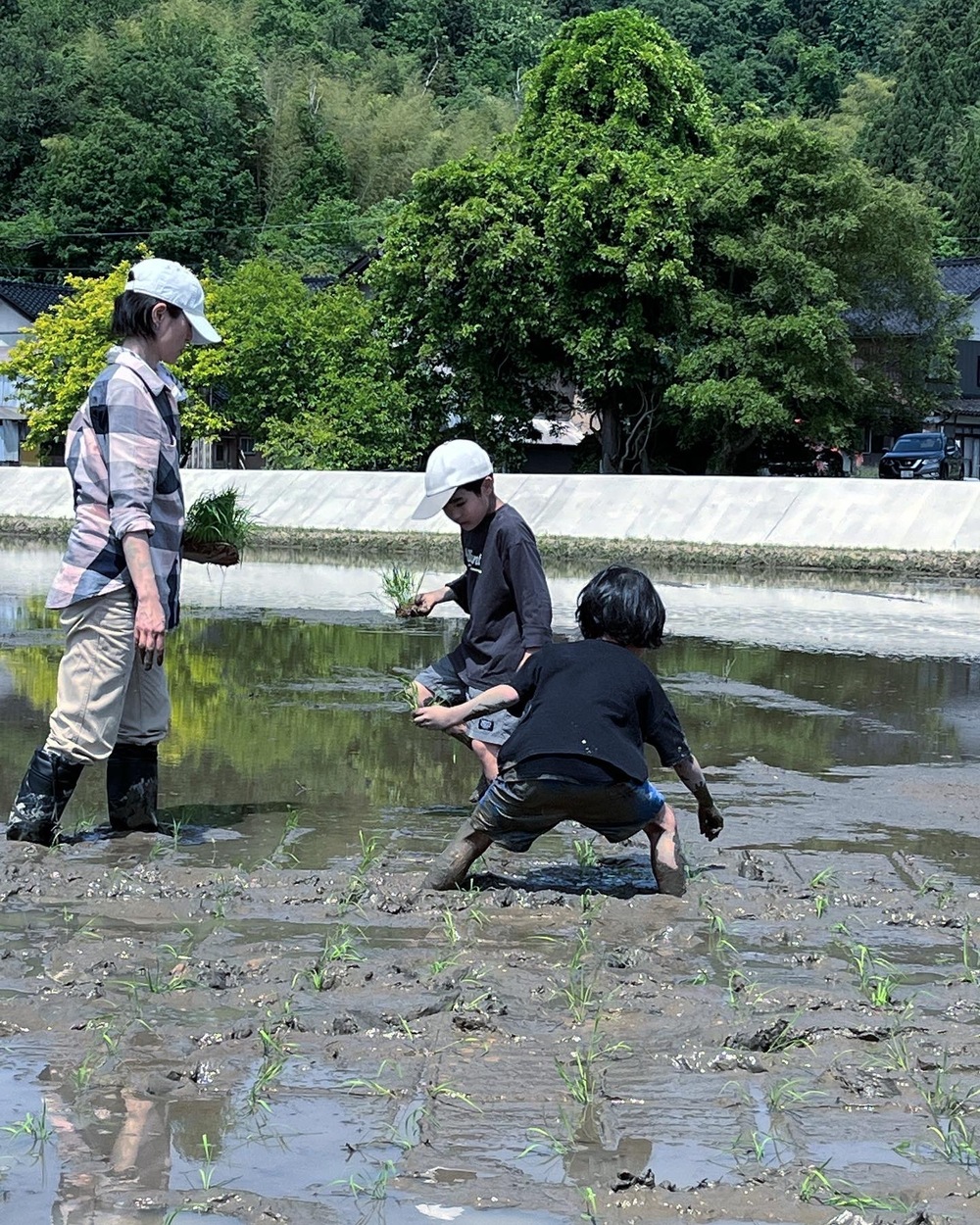黒米はすべて手で植えることにしています。