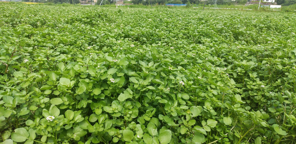 花クレソンが終わりを迎え、実をつけた枝が垂れ、水の中へ来年のタネを…。