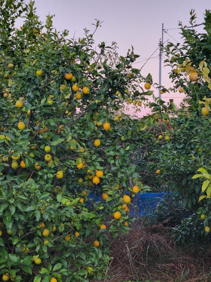 レモンの木33本の果樹園です。焼津ゆかりの文豪小泉八雲が朝食に飲んだウイスキー小さじ1ぱい入りのレモネードに憧れて植えました。無農薬、有機肥料、ノーワックス、ノー防腐剤。焼津の青い海に育まれた皮まで食べられる爽やかなレモンをどうぞ!