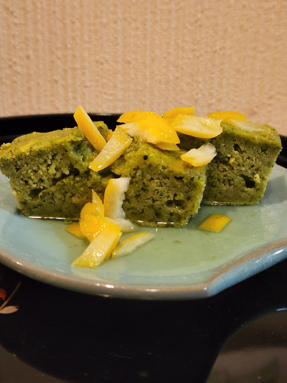 5回の試作を経て、ついにレモン🍋&抹茶&ブロッコリー🥦のパウンドケーキが、完成。正直力尽きました。初めは、「濃~い緑(悪魔)のパウンドケーキ」というタイトルを考えていました。でも、静岡茶の抹茶は、いくら混ぜても上品な早蕨でした。どぎつい緑には、なりませんでした。「悪魔の緑・・・」という言葉をふっとよぎらせた自分が、恥ずかしい思い。レシピは、週末に。