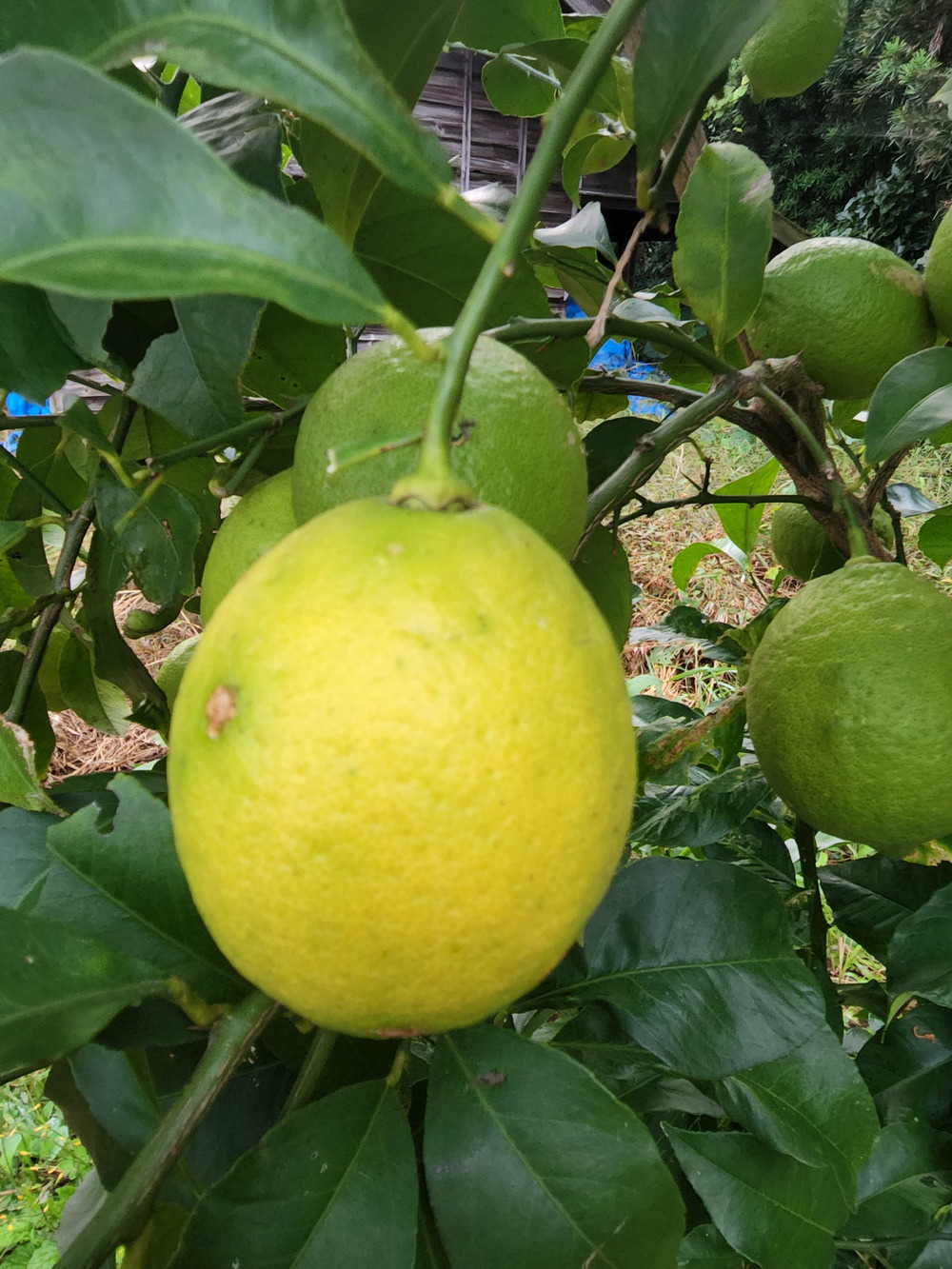 レモン🍋が、黄色になりました。昨年が、11月25日でしたので、今年(2024年令和6年)は、11月12日火曜日で、13日間早かったです。ただし、すべての木が、一斉に黄色になったわけではありません。2才7か月のリスボン種の実が、1番に黄色になりました。