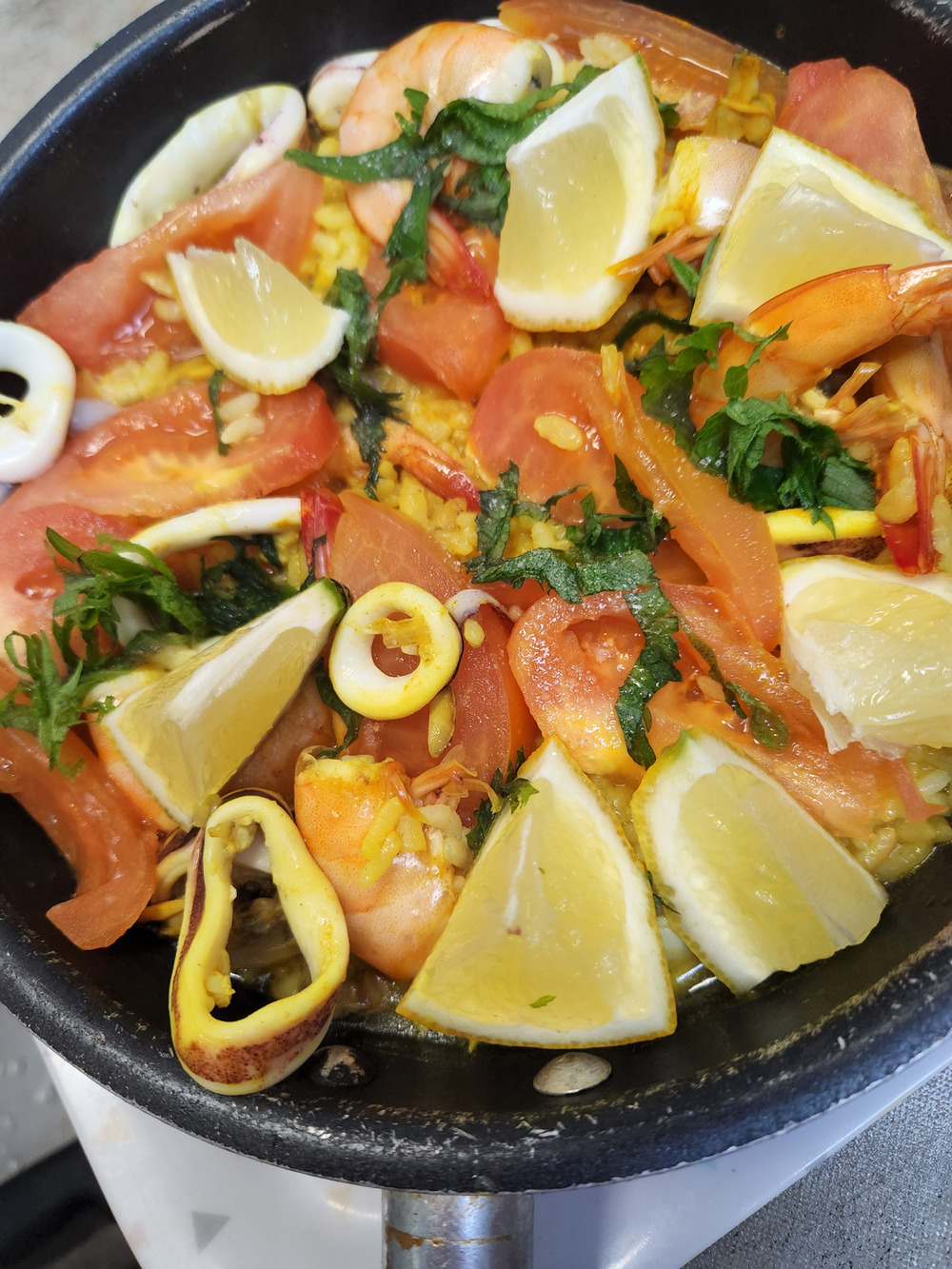 今日は、最高気温12℃暖かく。冷蔵庫にあった物で、パエリアを作りました。作り方は、レシピ欄。