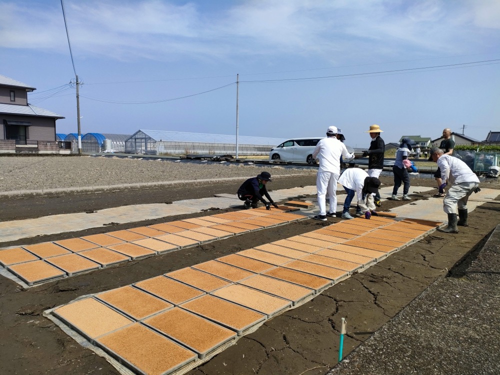 5月に孫たちに手伝ってもらい、種まきをしました。水の管理をして田植えまで大切に稲を育てます。