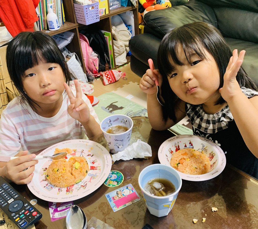 今朝採れたての形の悪いズッキーニをチャーハンに入れてみました🎵