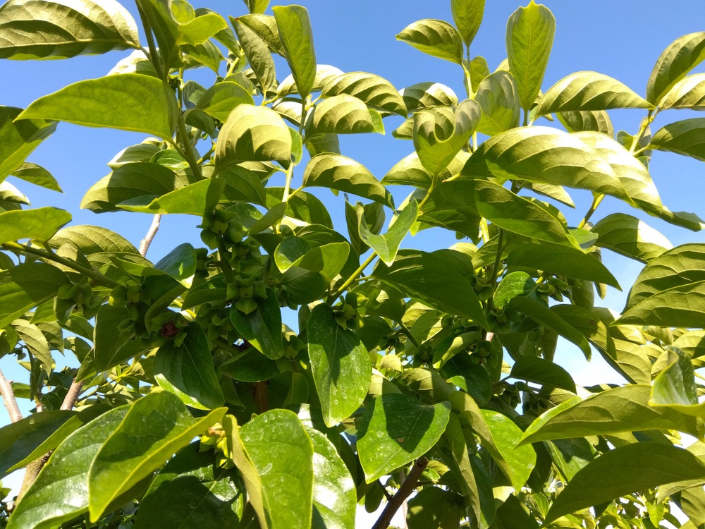 沢山の柿の実がなってます。美味しい大きな実にするため、一枝に一つの実にします😊