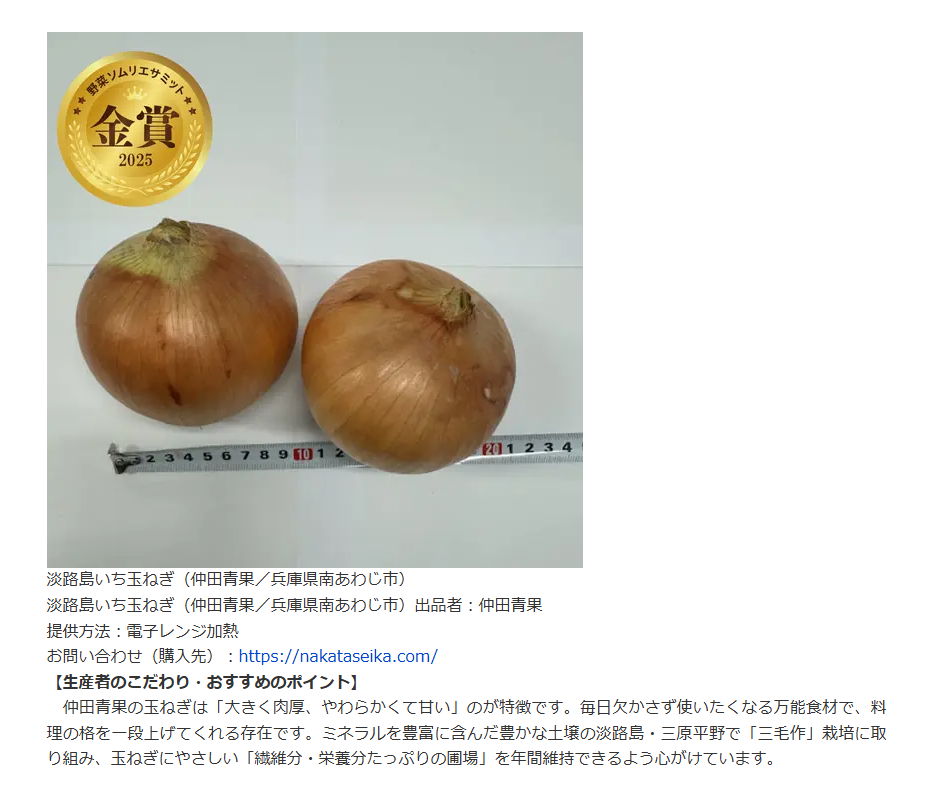 このたび、淡路島いち玉ねぎが全国品評会「野菜ソムリエサミット」にて3年連続の金賞を受賞しました!