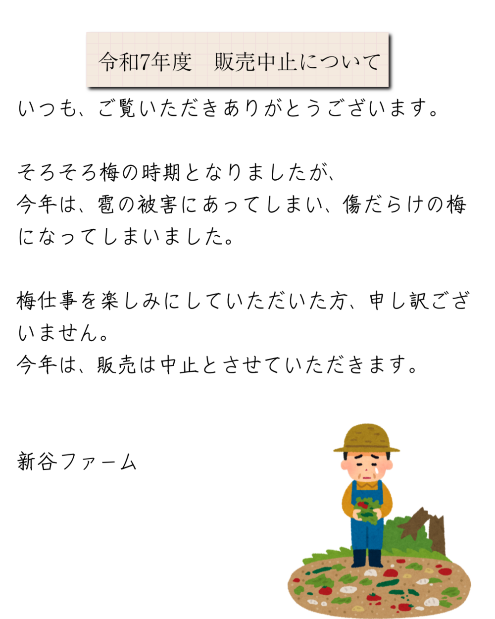 完熟梅の予約販売ですが、好評につき、終了させていただきました。