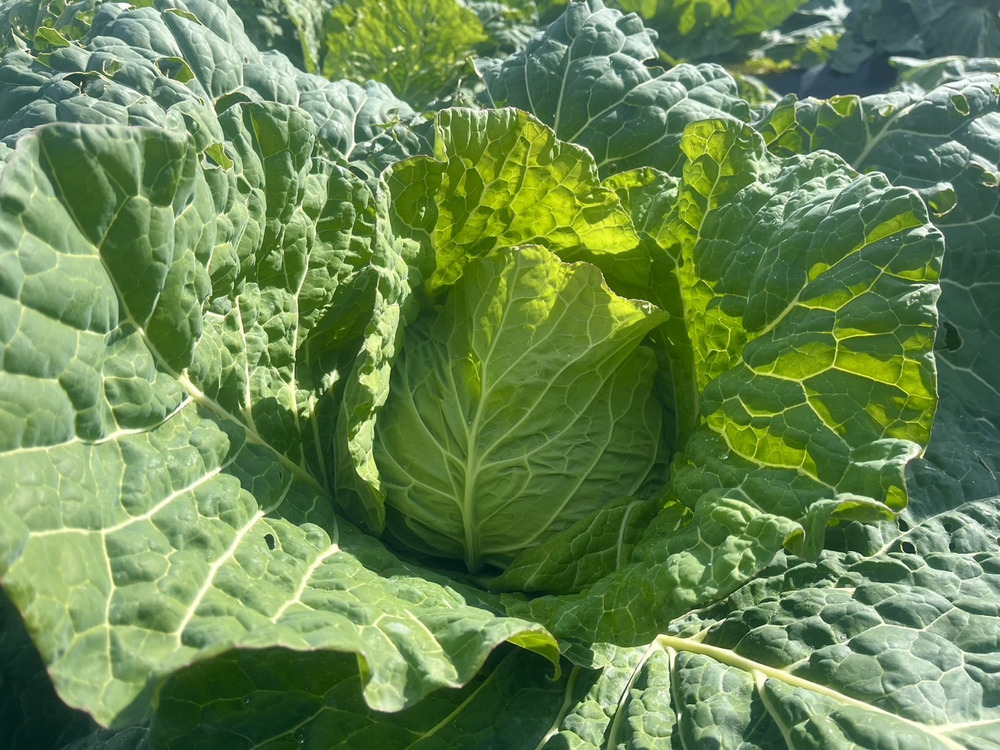 ブロッコリーやキャベツが、葉っぱの間からひょっこり顔を覗かせています!