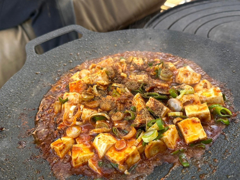 美味しい麻婆豆腐ができました!畑の中で食べると、独特の風味が楽しめます!