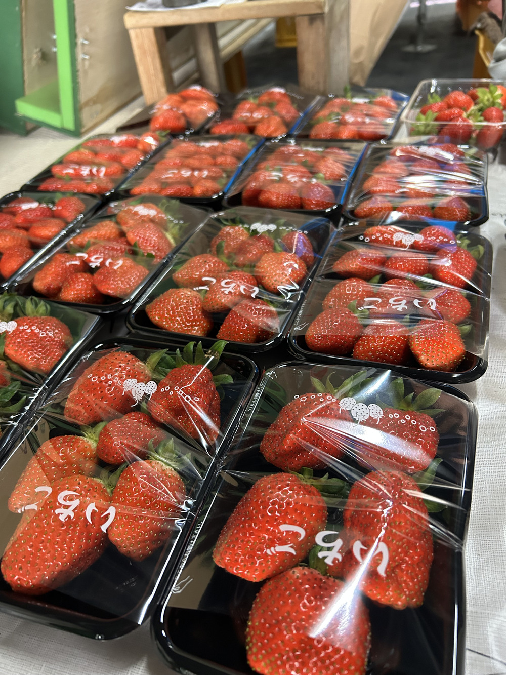 イチゴ収穫したあと、調製場(パック詰めとか箱詰めとかする場所!)に持って帰って調製をします。