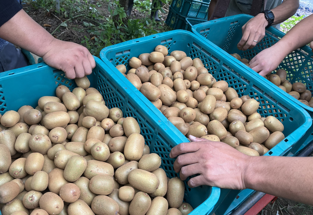 このサイズのキウイを、箱いっぱいにしてお届けしているんです!