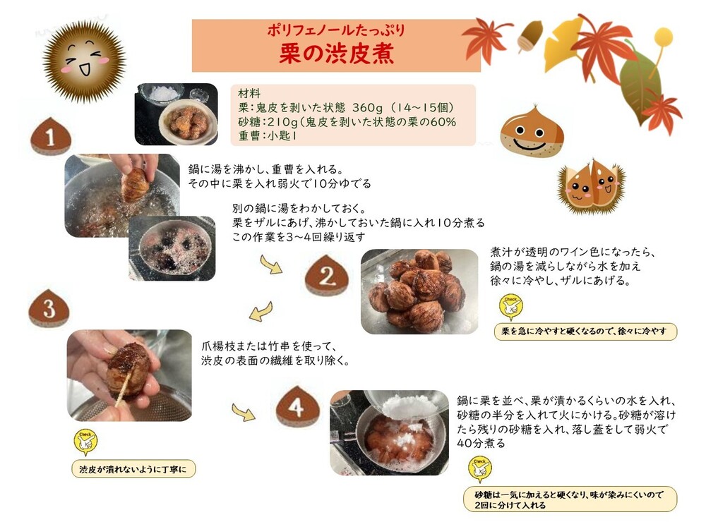 渋皮を傷つけない事、掃除を丁寧にして渋皮の内側を食すイメージです。