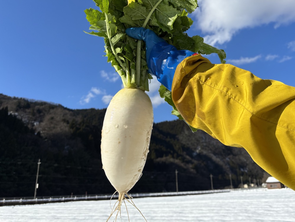 【味グルメ大根3本】雪の下で甘みを蓄えました。雪中大根。
