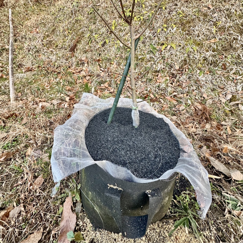 ・幹への防虫ネット(カミキリムシ対策)