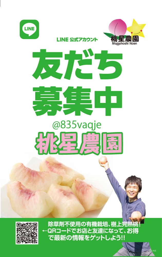 本業は桃農家です。樹上完熟で減農薬、除草剤不使用でやっています。肥料も有機肥料でさえそろそろ無しにできるかもしれません。