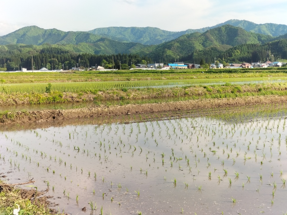 現在、田植え中です。ちょうど田植えの頃になると、山々の新緑が綺麗で、農作業をしていても気持ちが良いですね。夜になると色々なカエルの歌が聞こえて来て、心が落ち着きます。