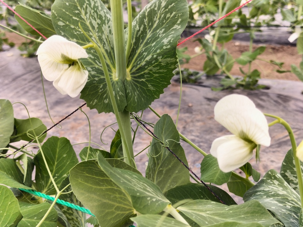昨年、ご好評頂いたスナップエンドウの花がたくさん咲いてきました。もう少しすればプックリとした実が付いてきます。初期は少し実が短めですが、初物を食べられるまで後10日ぐらいでしようか。出荷までもう少しです。今しばらくお待ち下さい。