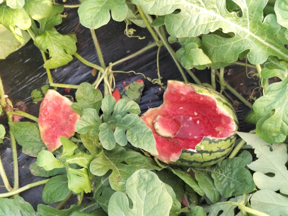 彼らのスイカの熟し具合を見分ける能力は人間を遥かに超越しています。おそらく鼻で熟し具合が分かるのでしょう。ちょうど美味しく食べ頃になったのを見計らってガブッと食べて行きます。
