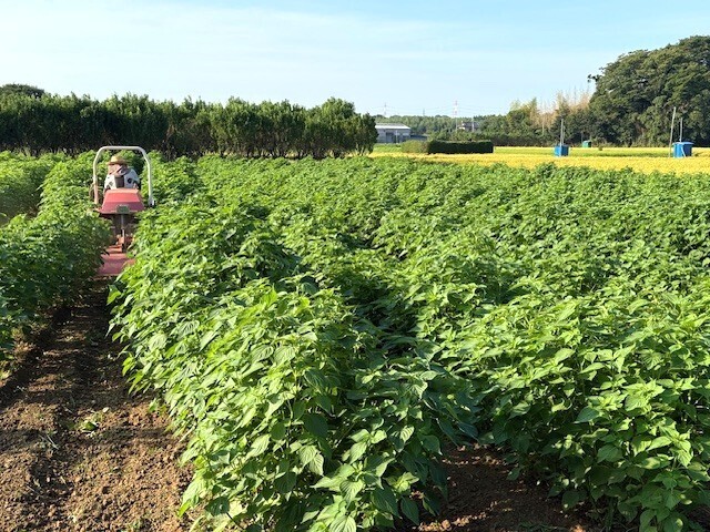 えごま畑の草刈り・中耕作業実施(9月3日)!!えごま生育良好!!