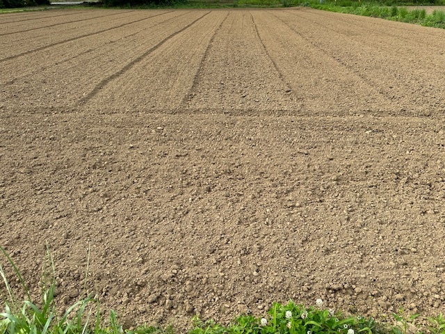えごまの苗、グングン生育中です。畑もトラクターで耕起完了!!水ハケの悪い畑の排水対策もやってみました・・・・・効果期待、楽しみです。