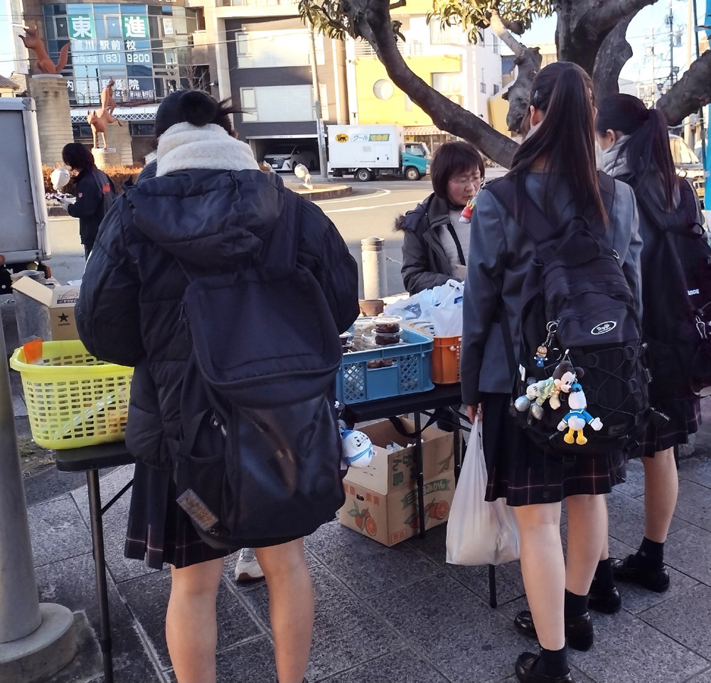 1月17日 愛知県の三河の方で学生さんの食料支援をするとのことを聞き、みかんを寄付させてもらいました。写真にはみかんは写っていませんが袋の中に入っているとのことでした。