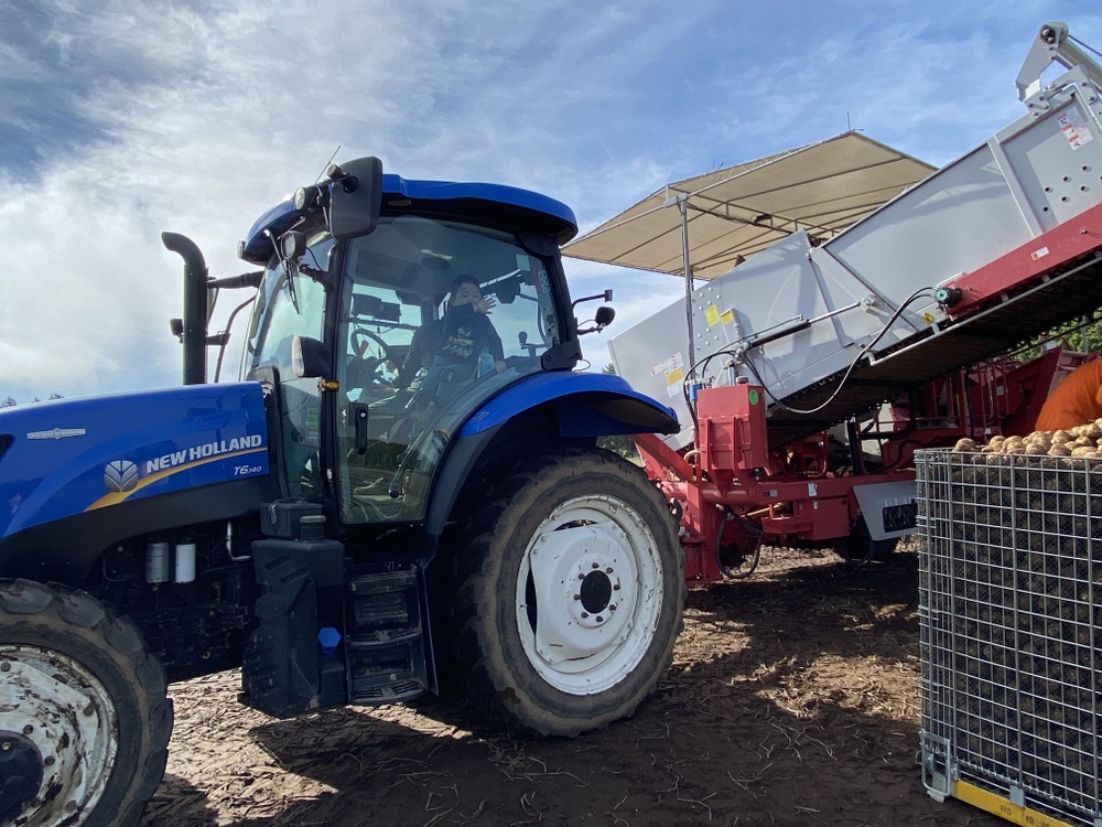 北海道の広い畑をトラクター牽引のポテトハーベスターという機械で、収穫&選別していきます。