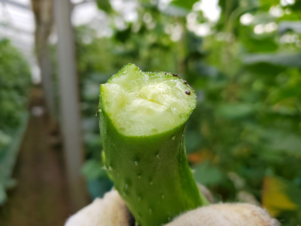 きゅうり🥒を拾ったら、もう水分がジワジワ出てきていた。