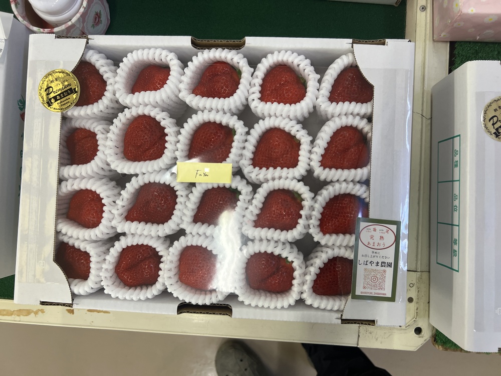 完熟あまおう 収穫後イチゴ畑内の作業場で箱詰めして即日出荷