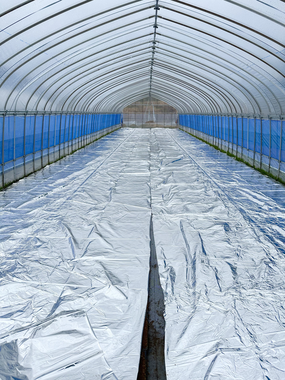 今年は苗箱1190枚です。並べた後、銀色の発芽シートを掛けました。