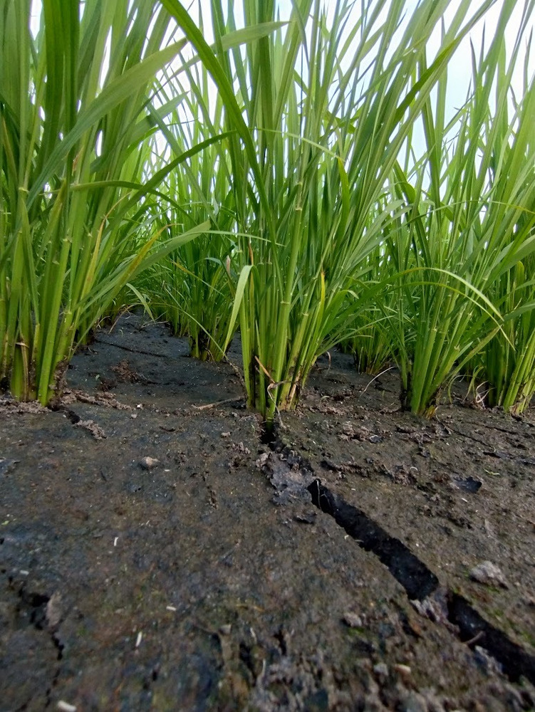 7月に入り今は中干しという期間になりました。これは、ずっと水を張ったままでは根が弱くなるので一時的に田んぼの水を乾かす作業です。これをすることで根が深く張るようになり丈夫な稲になります。他にも土の中で発生するガスを抜いたり、酸素を入れる目的があります。ひび割れや歩いてもめり込まないぐらいがベストなのですが、梅雨らしくない暑い日が連日続き写真のように地割れのようになってしまいました。これではだめなので水を引き、適度な状態にしました。この後は浅水で管理しながら穂が出る準備が始まります!梅雨が明ければ次は台風が襲来します。デカイ台風が来ないことを願いたいですね。