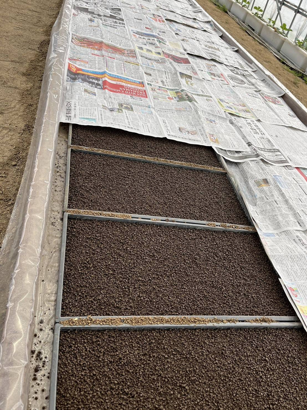 写真3枚目は覆土し新聞紙で光りを遮っている様子