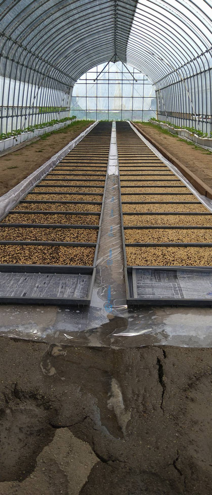 がもう農園では種まき、覆土は専用の機械で行いまますが、苗を置く小さなプール(←これめっちゃ大変…)や種を植えるプランターの土入れは手作業です。(←家族総動員で楽しく作業に取り組みました!)