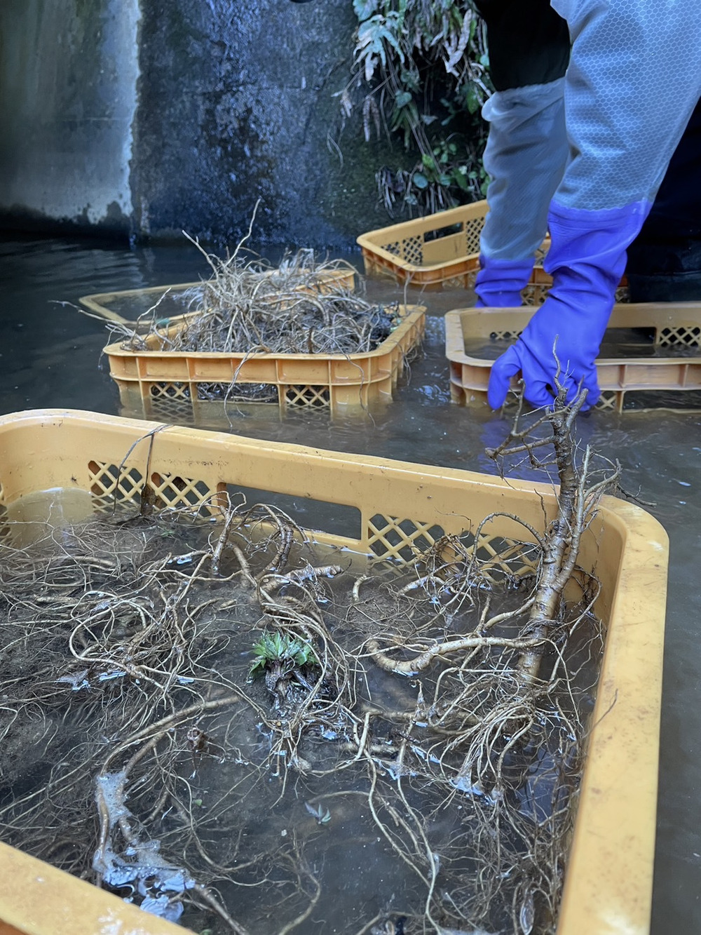 収穫した根は薬草扱いのため、多くが洗浄して乾かした後に専門の問屋さんや薬局に販売されていきます。